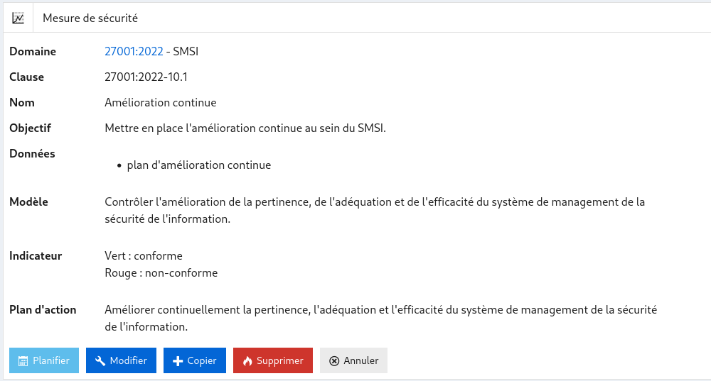 « Planifier » : vous arrivez vers l’écran de planification de la mesure de sécurité.