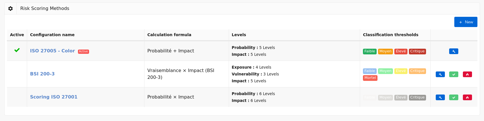 Risk scoring is fully configurable. Multiple configurations can be defined, but only one is active at a time. Changing the active configuration takes effect immediately across the entire register.