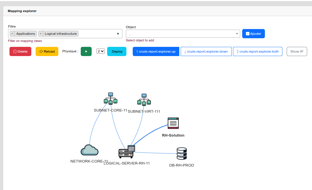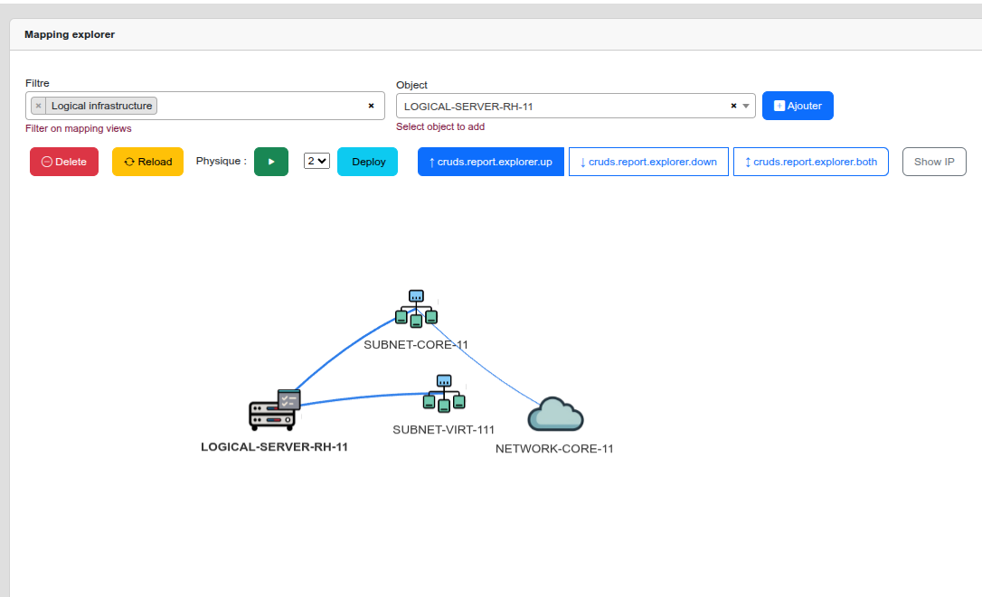 Physical Mode Enable the Physical toggle only when you want to visualize physical network links (WAN/LAN/MAN). When disabled, the exploration stays at the logical level.