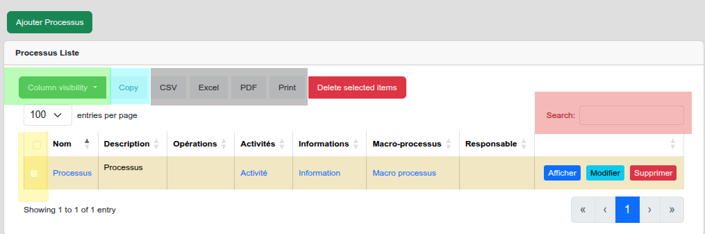 Column Visibilitypermet de choisir les colonnes à afficher. - 📕 Le bouton