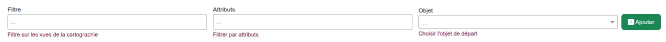 - Le champ "Objet" permet de sélectionner un élément de la cartographie et de l'ajouter à l'exploration en cliquant sur