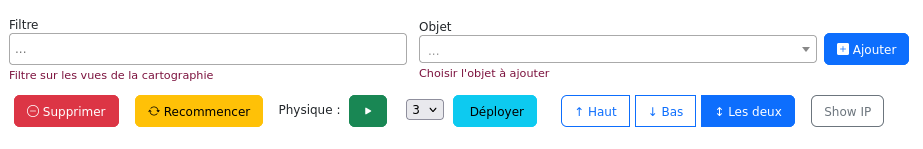 | Show IP | Bouton gris | Affiche les adresses IP sur les assets réseau |